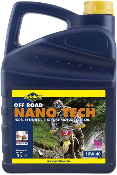 Putoline Oil Off Road Nano Tech 4+ 10W-40 is de meest geavanceerde, 100% synthetische viertakt motoroliën ooit door Putoline Oil geproduceerd. De motoroliën garanderen volledige toepasbaarheid met modern koppeling frictiemateriaal en zorgen voor een onovertroffen goed aangrijpen van de koppeling. Kenmerken: - Excellente slijtagebescherming van motor en transmissie - Zeer laag olieverbruik - Zeer goede vloeibaarheid, ook bij lage temperaturen - Maximale, constante motorprestaties - Uitermate goed reinigend vermogen - Blijvend goede kwaliteit over de gehele levensduur