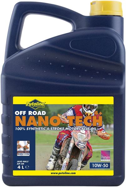 Putoline Oil Off Road Nano Tech 4+ 10W-50 is de meest geavanceerde, 100% synthetische viertakt motoroliën ooit door Putoline Oil geproduceerd. De motoroliën garanderen volledige toepasbaarheid met modern koppeling frictiemateriaal en zorgen voor een onovertroffen goed aangrijpen van de koppeling. Kenmerken: - Excellente slijtagebescherming van motor en transmissie - Zeer laag olieverbruik - Zeer goede vloeibaarheid, ook bij lage temperaturen - Maximale, constante motorprestaties - Uitermate goed reinigend vermogen - Blijvend goede kwaliteit over de gehele levensduur