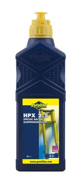 Putoline HPX R 2.5 voorvorkolie is samengesteld uit speciale hoog geraffineerde, synthetische basisoliën. Door toevoeging van de meest geavanceerde additieven is een high-tech topproduct ontstaan voor gebruik op Grand Prix niveau. HPX voorvorkolie voorkomt corrosie, oxidatie, lekkende keerringen en schuimvorming. HPX voorvorkolie is speciaal geschikt voor Grand Prix motoren, zowel in cross, roadracing, enduro, trail en off road.
