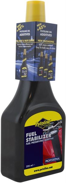 Putoline Fuel Stabilizer gaat oxidatie van benzine tegen. Wanneer U uw motorfiets gedurende langere periode (meer dan 1 maand) niet gebruikt en er tijdens deze stalling brandstof in de tank achter blijft, bestaat het gevaar dat de benzine oxideert. Hierdoor ontstaat gom en lakafzetting (vervuiling) in de tank en in diverse zeer belangrijke onderdelen in de carburateur. Dit heeft moeilijk starten en onregelmatig lopen van de motor tot gevolg. Putoline Fuel Stabilizer voorkomt deze problemen.