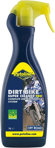 Biodegradable Dirt Bike Super Cleaner Pro is een hoog geconcentreerde, niet giftige, biologisch afbreekbare reiniger aanbevolen voor het reinigen van alle soorten Motorcross- en Enduro motorfietsen. De unieke snel werkende formulatie verwijdert efficiënt modder, zand, teer, vet en ander vuil van kunststof en metalen oppervlakten. Fosfaat vrij : geeft geen vlekken op aluminium. Niet schadelijk voor rubber en kunststof.